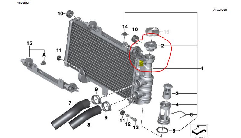 Das wenige Kühlwasser bei Moppeds hat nicht immer die nötige Wärmekapazität um bei schnellen Etappen die Wärme aufzunehmen, und die Kühlfläche der F reicht auch nicht wirklich aus. Es baut sich ein Druck auf und überschüssiges Wasser strömt in den AGB. Dort verdunstet wohl zu viel durch den alten AGB über das kleine Löchlein bzw. wird auch über das Steigrohr im Deckel rausgeblubert. Daher auch immer die Flecken bei den Leuten die den alten AGB haben. BMW hat das mit der neuen Version ja einfach nur wo anders her verlegt, damit das weniger auffällig und durch den Schlauch noch ein bisschen wieder kondensieren kann.